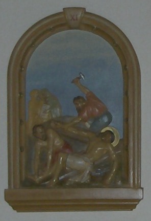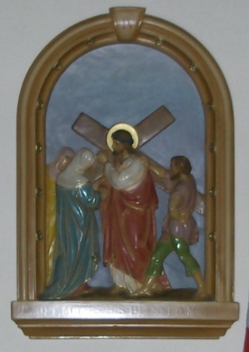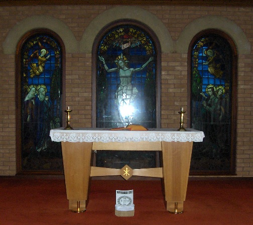 The chapel was built in 1934. The stained glass was added about 1958. There was a memorial to Old Boys who fell in the Second World War and a set of carved Stations of The Cross. When the chapel came down with the rest of the buildings in 1984, these artefacts were preserved at English Martyrs Church, 154 High Cross Rd, Poulton, FY6 8DA, where they can still be seen. Click on the pictures to enlarge. | |||||||||||||||||||||||||||||||||