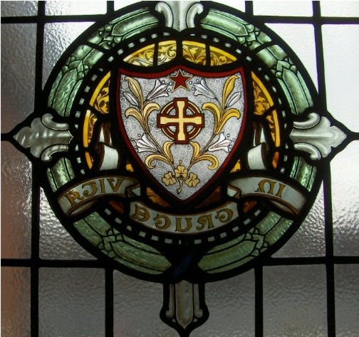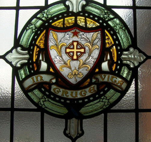 This fragment is best viewed from behind. You can see the school motto in mirror writing. |