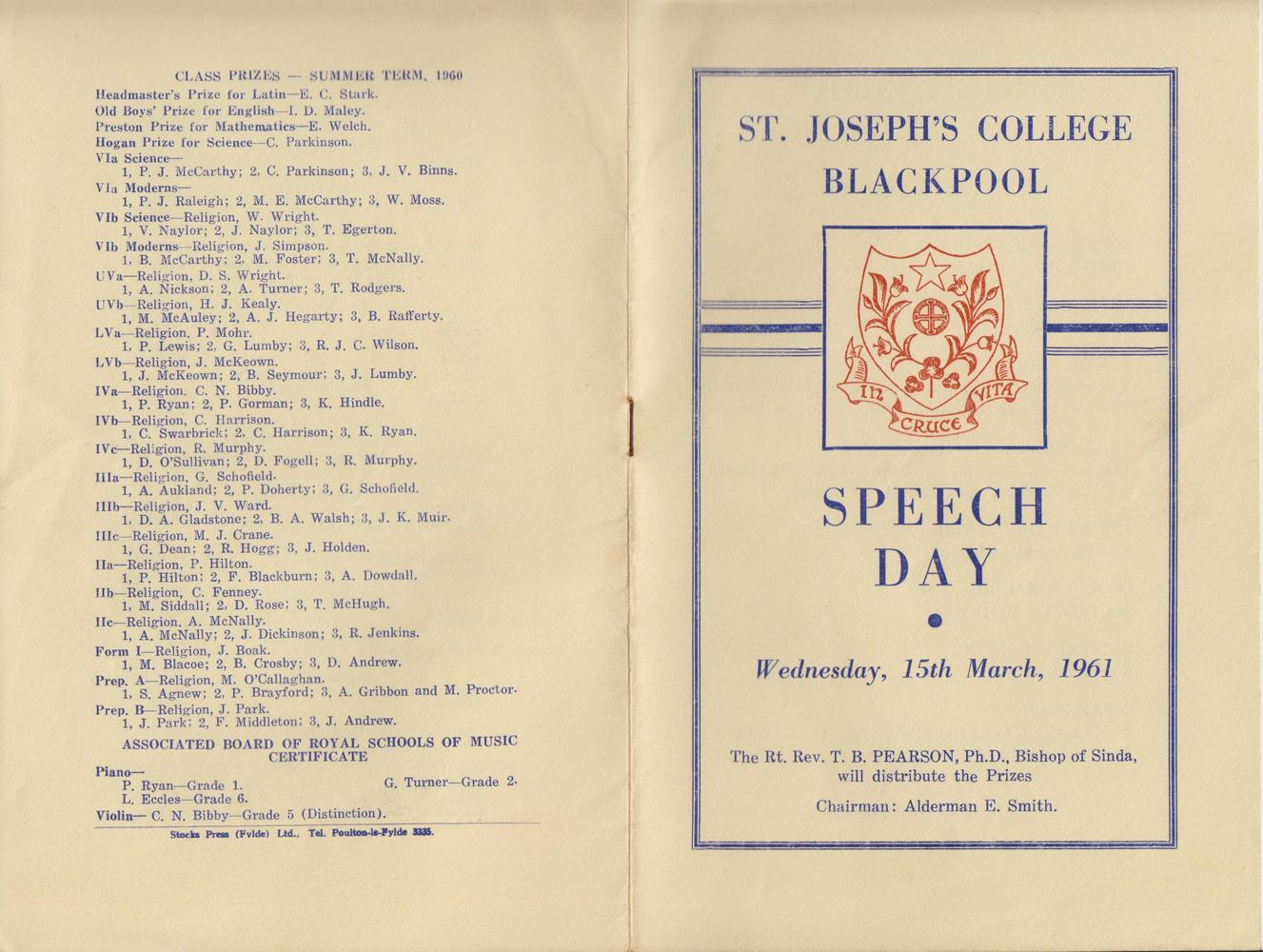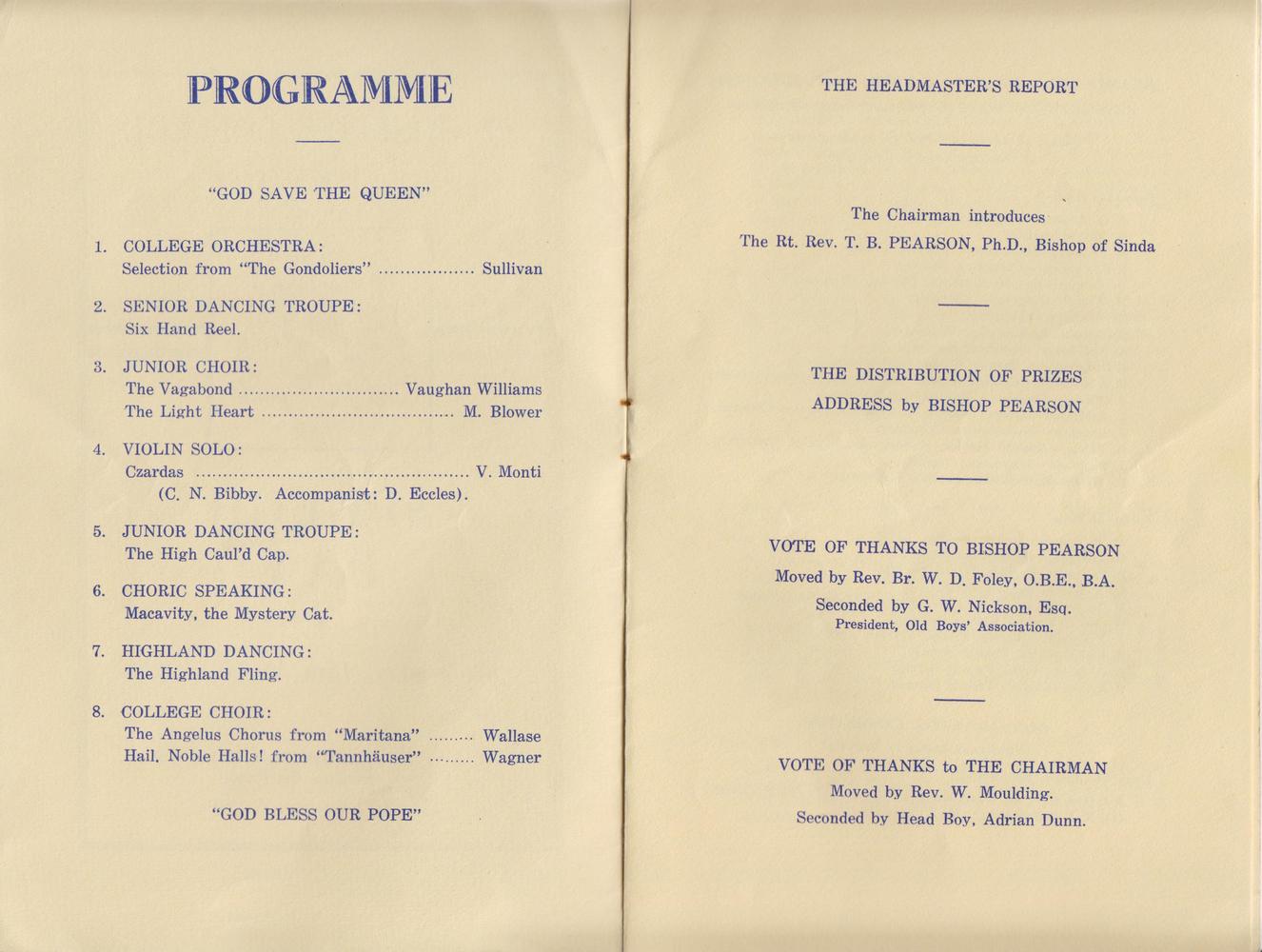 Photo Gallery This is the programme for Speech Day 15th March 1961. Click on the pictures to enlarge. |